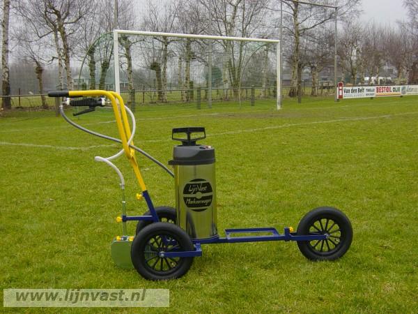 Deze markeerwagen is voorzien van een 10 ltr RVS tank. Moet op druk worden gebracht waarna de werkdruk kan worden ingesteld.
